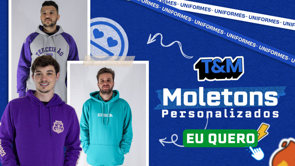 A T&M Personalizados trabalha com a melhor matéria prima do mercado, resultando em moletons com menos encolhimento, mais confortáveis, com maior durabilidade e é claro, bem mais quentinhos para te proteger do frio. Tá esperando o que para pedir o seu. Entre em contato e SOLICITE ORÇAMENTO.