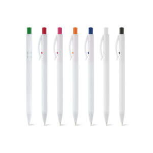Esferográfica em ABS com acabamento brilhante e mecanismo colorido
