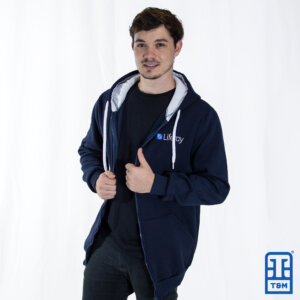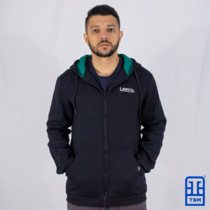 Blusa de Moletom Canguru com zíper feita em material 50% algodão e 50% poliéster. Moletom peluciado, 3 cabos de gramatura 350g/cm³. Malha interna no capuz de composição 100% algodão fio 30/1 penteado. Pode ser feito com ou sem capuz.