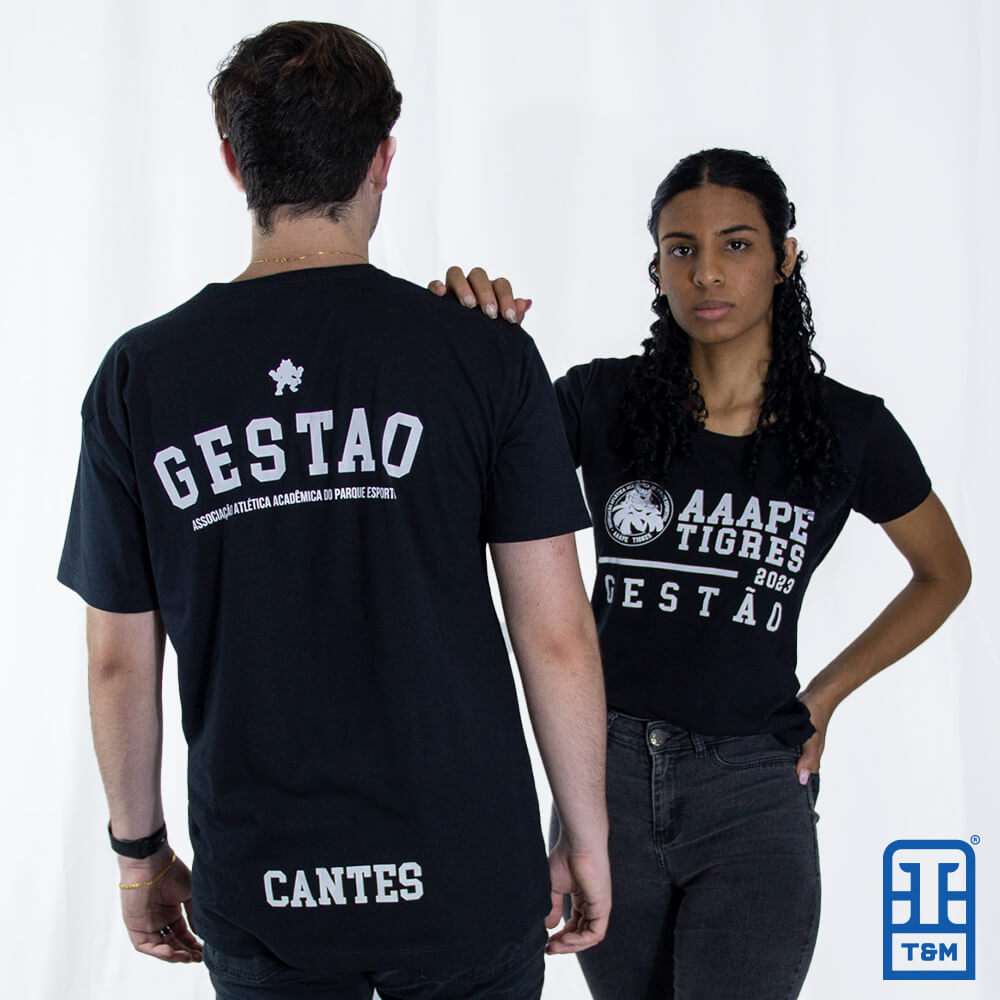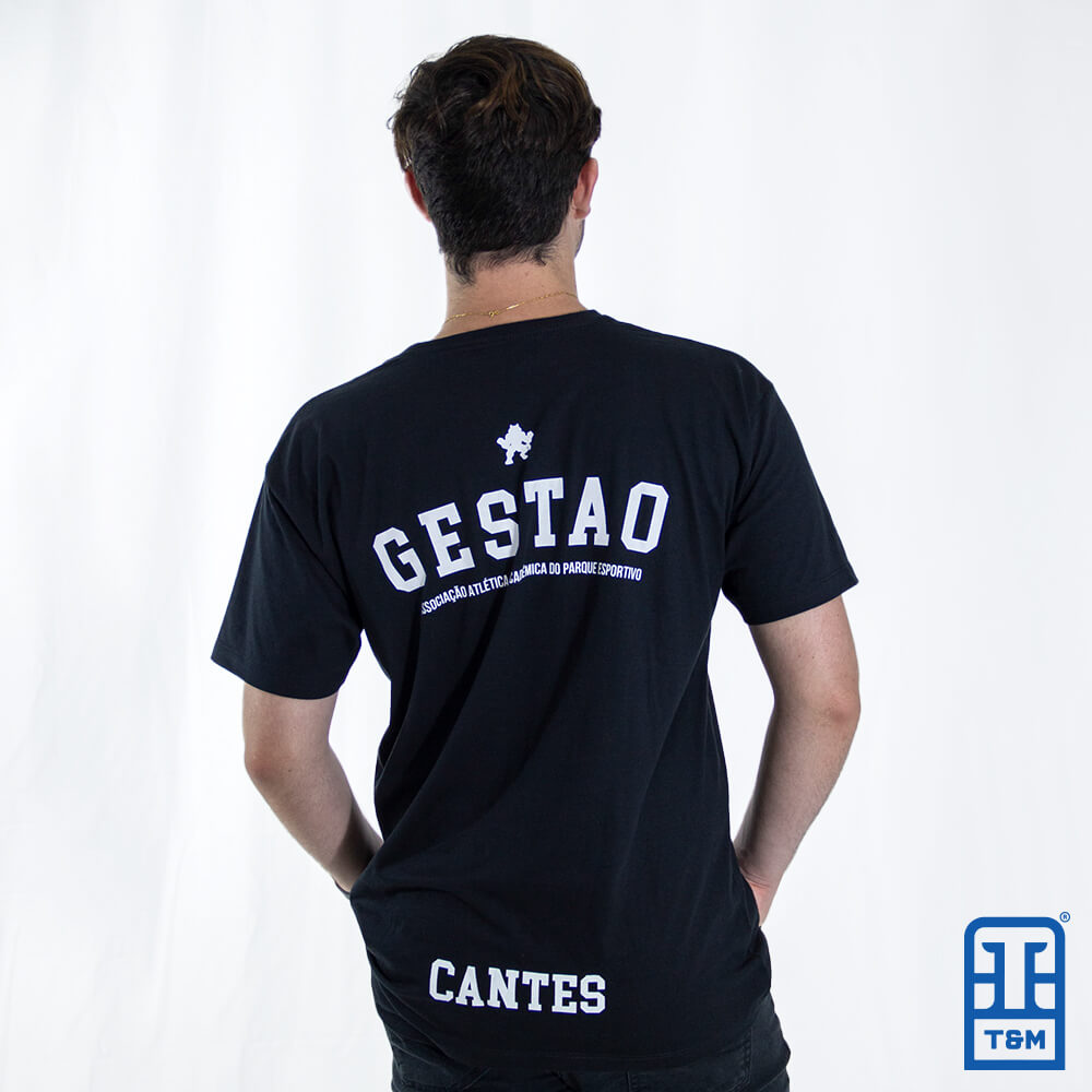 Camiseta preta com estampa em silk frente e costas.