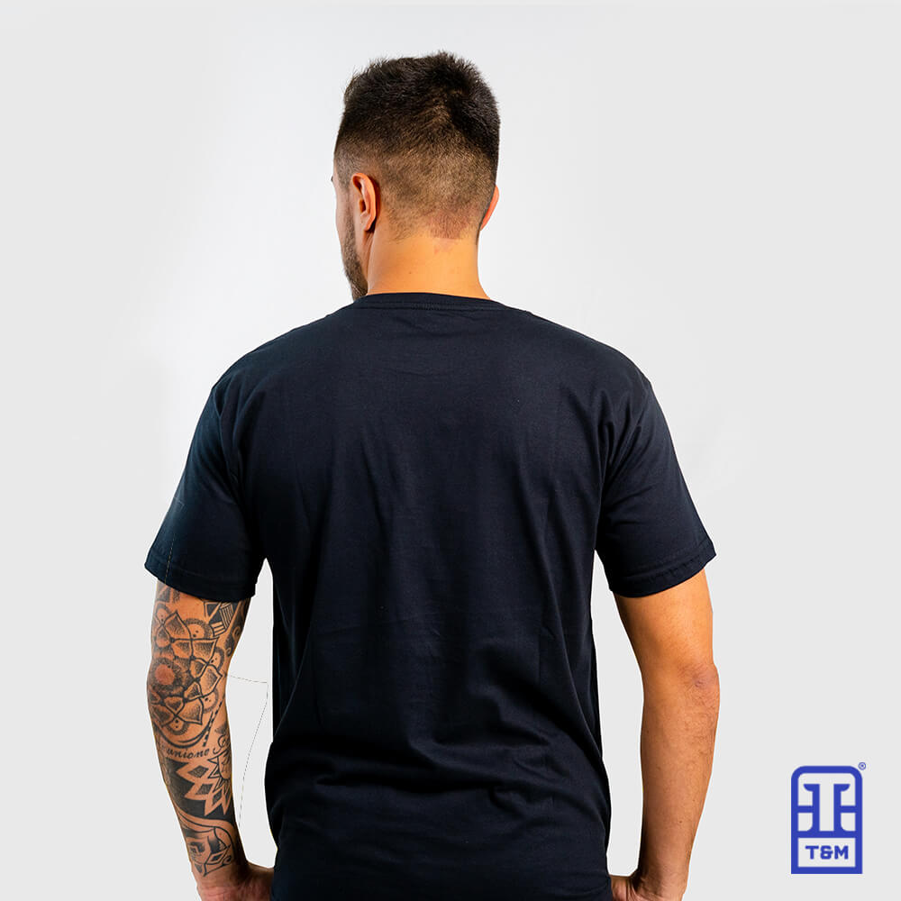 Camiseta preta com estampa em silk na frente.