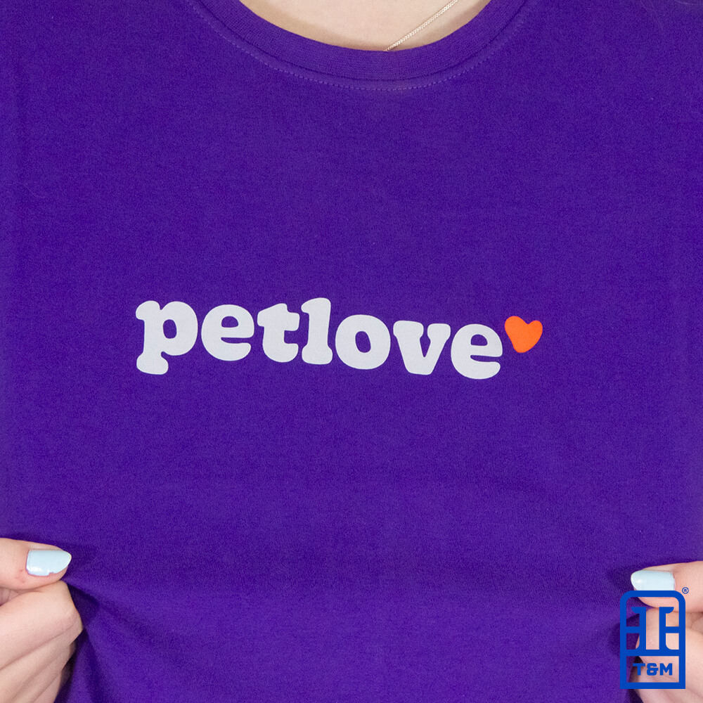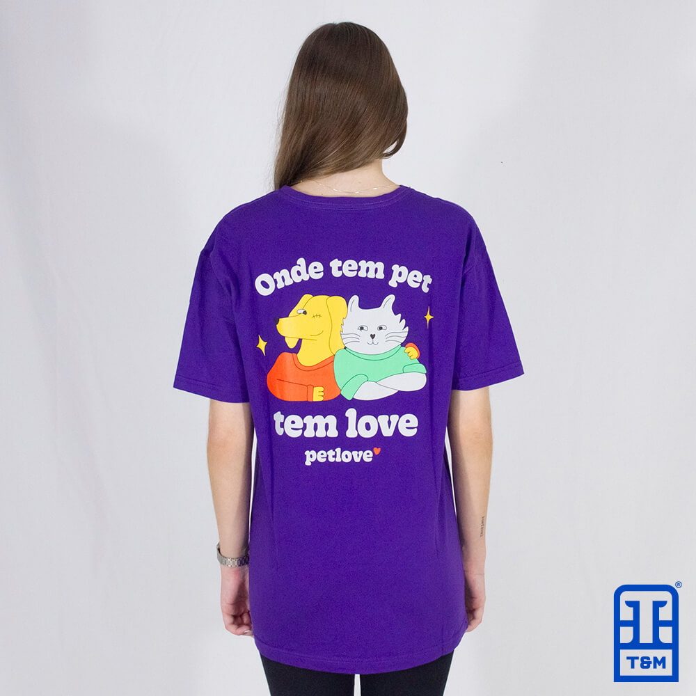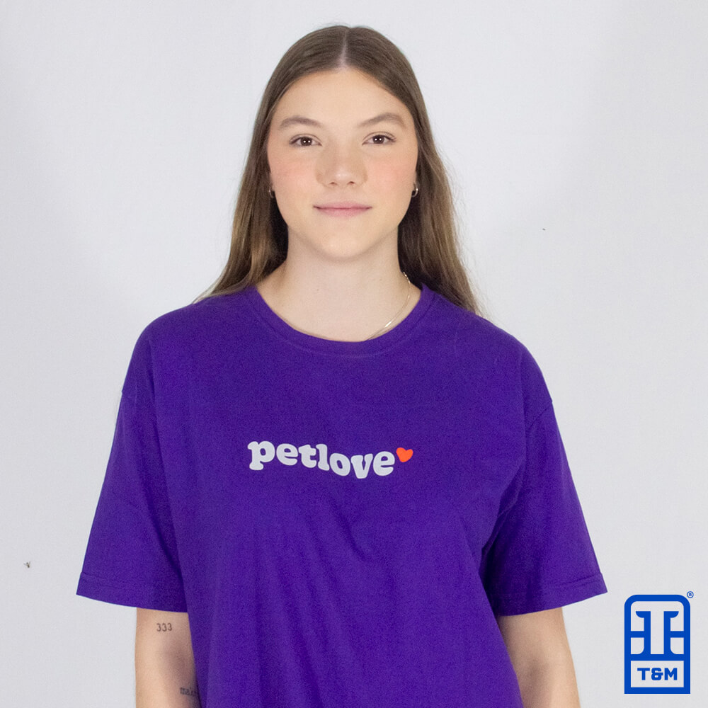 Camiseta para empresa na cor roxa. Camiseta 100% algodão, fio 30/1 penteado, fio compactado (menos encolhimento na lavagem), com gramatura de 160 g/cm³. Além disso nossa peça possui um reforço na gola ombro a ombro.
