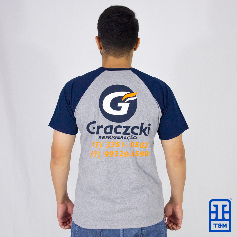 Camiseta raglan para empresa na cor roxa. Camiseta 100% algodão, fio 30/1 penteado, fio compactado (menos encolhimento na lavagem), com gramatura de 160 g/cm³. Além disso nossa peça possui um reforço na gola ombro a ombro.