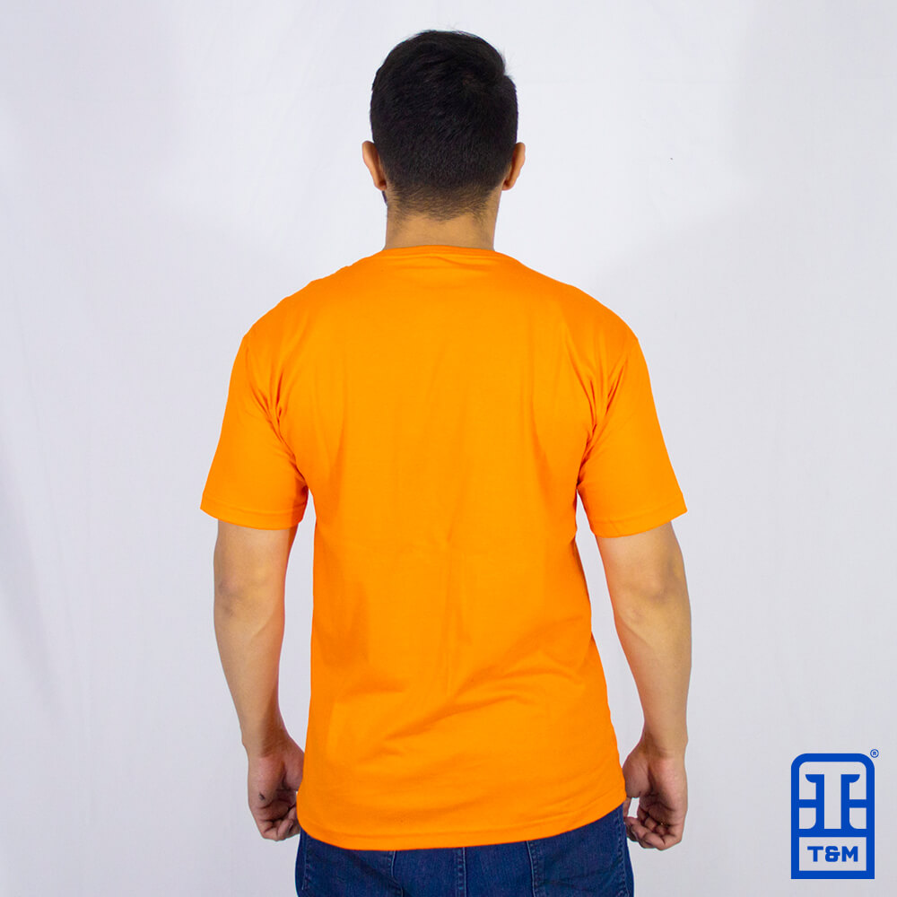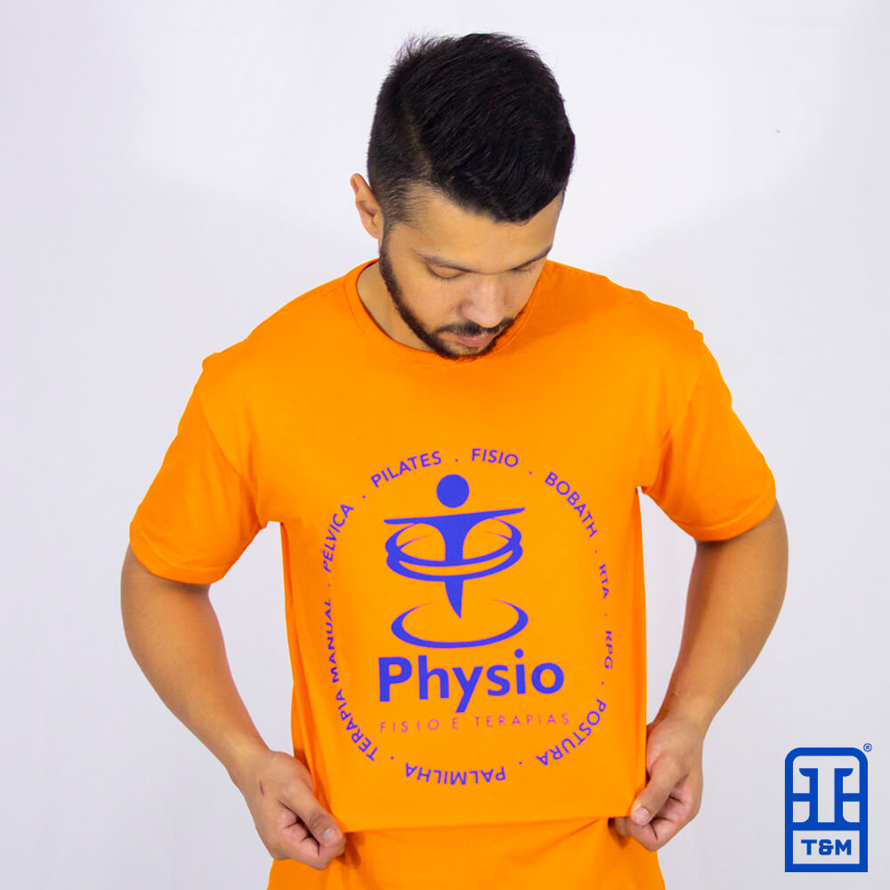 Camiseta laranja com estampa em silk.