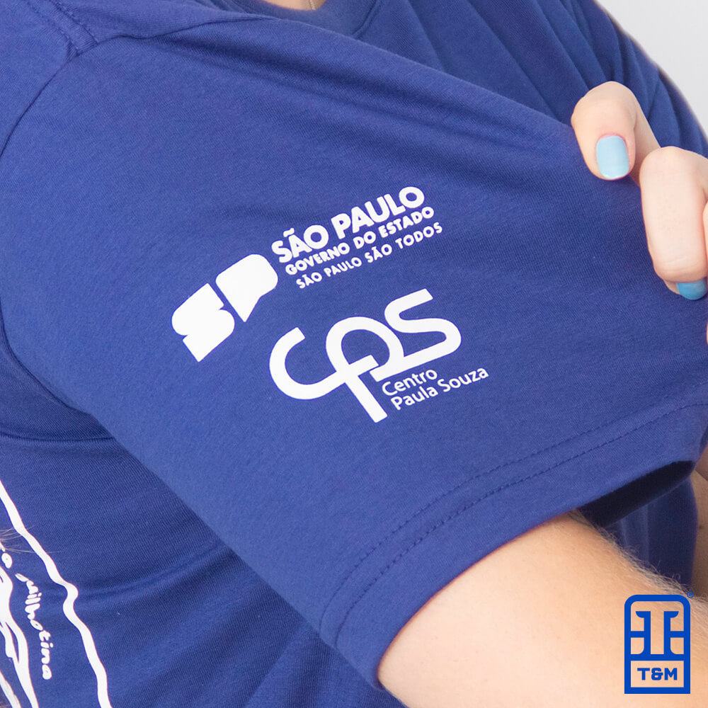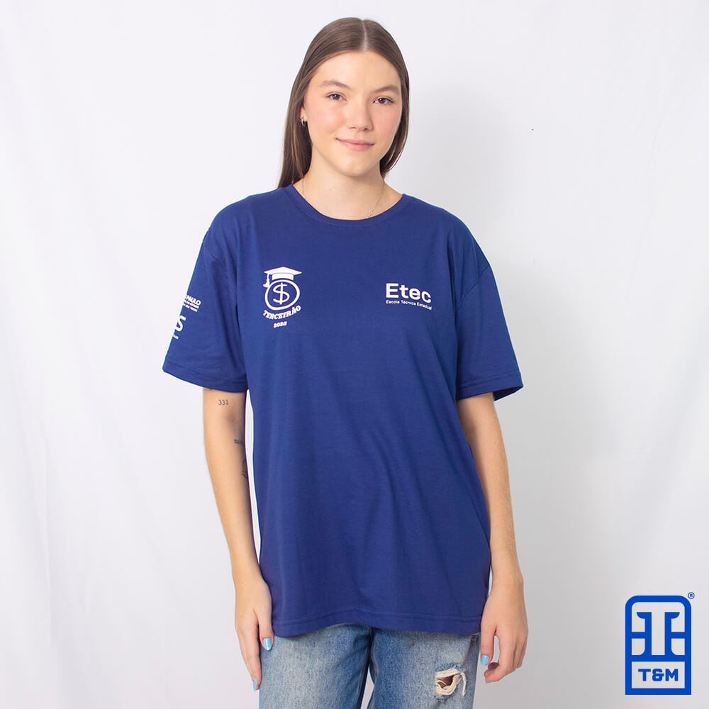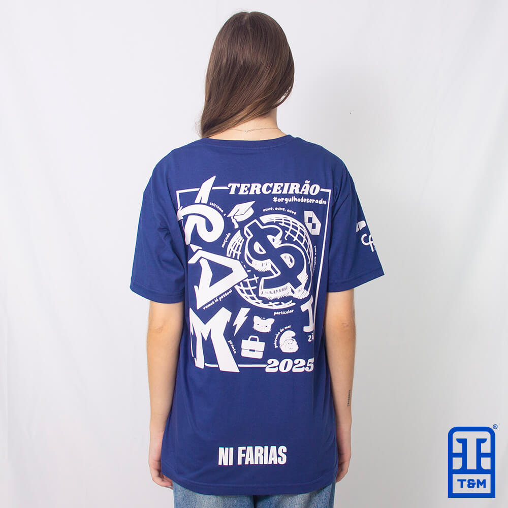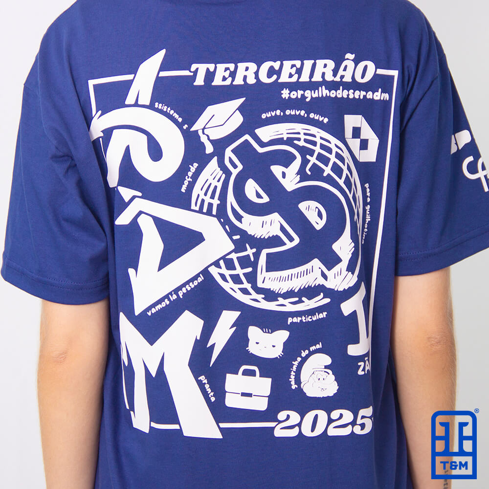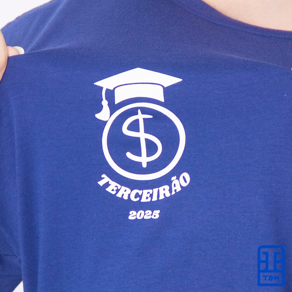 Camiseta para terceirão na cor azul com estampa em silk frente e costas.