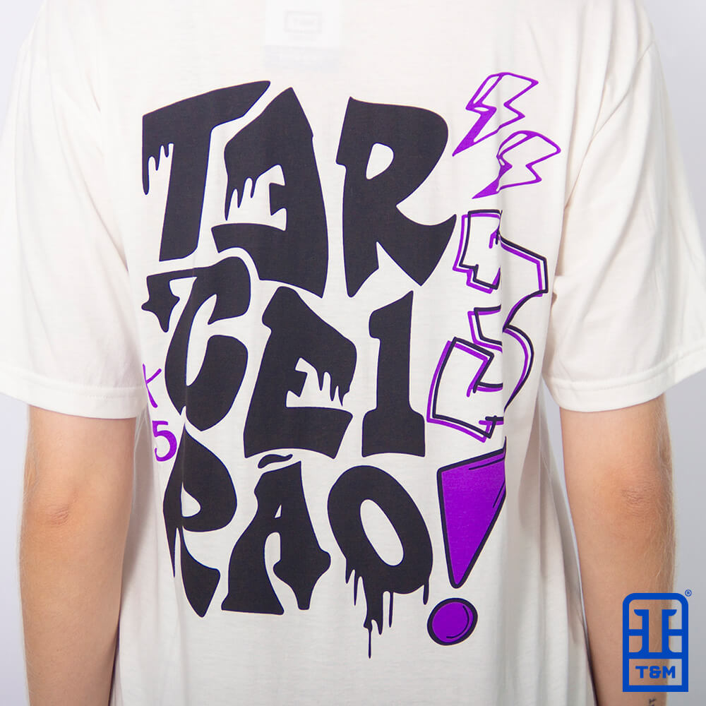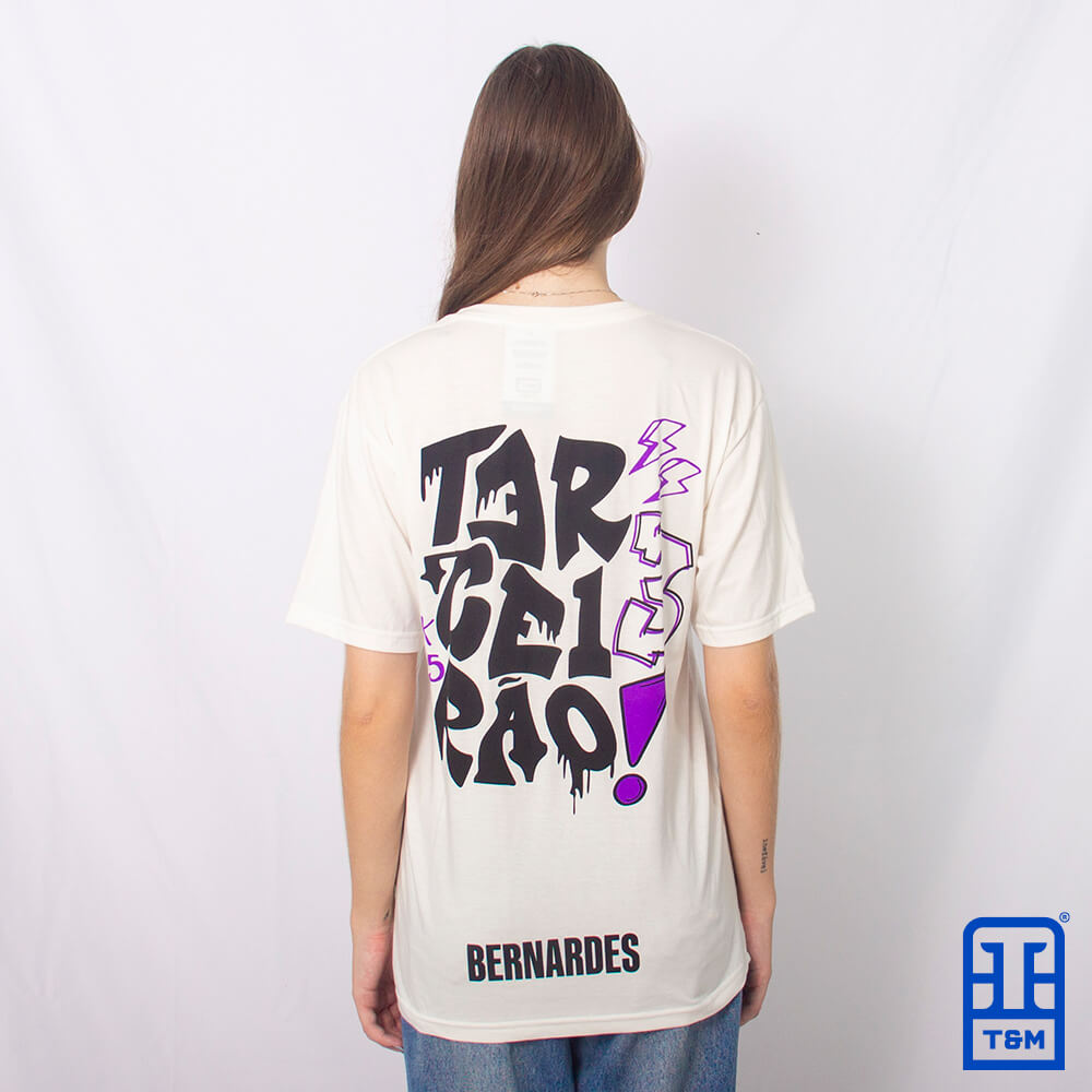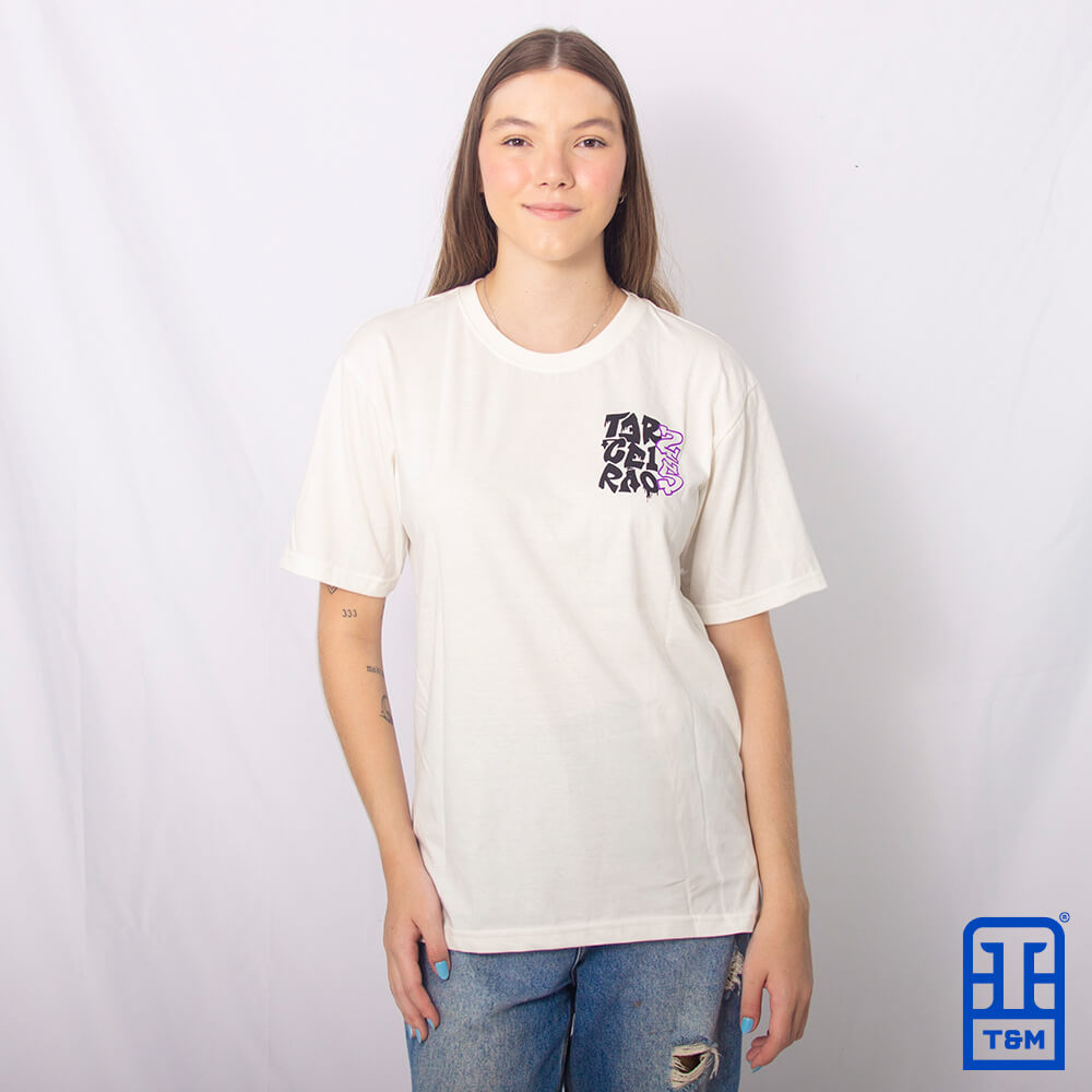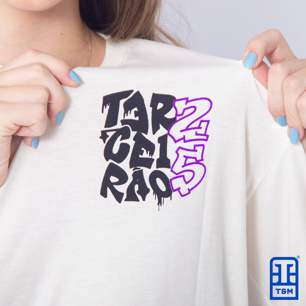 Camiseta para terceirão na cor champagne com estampa em silk frente e costas.