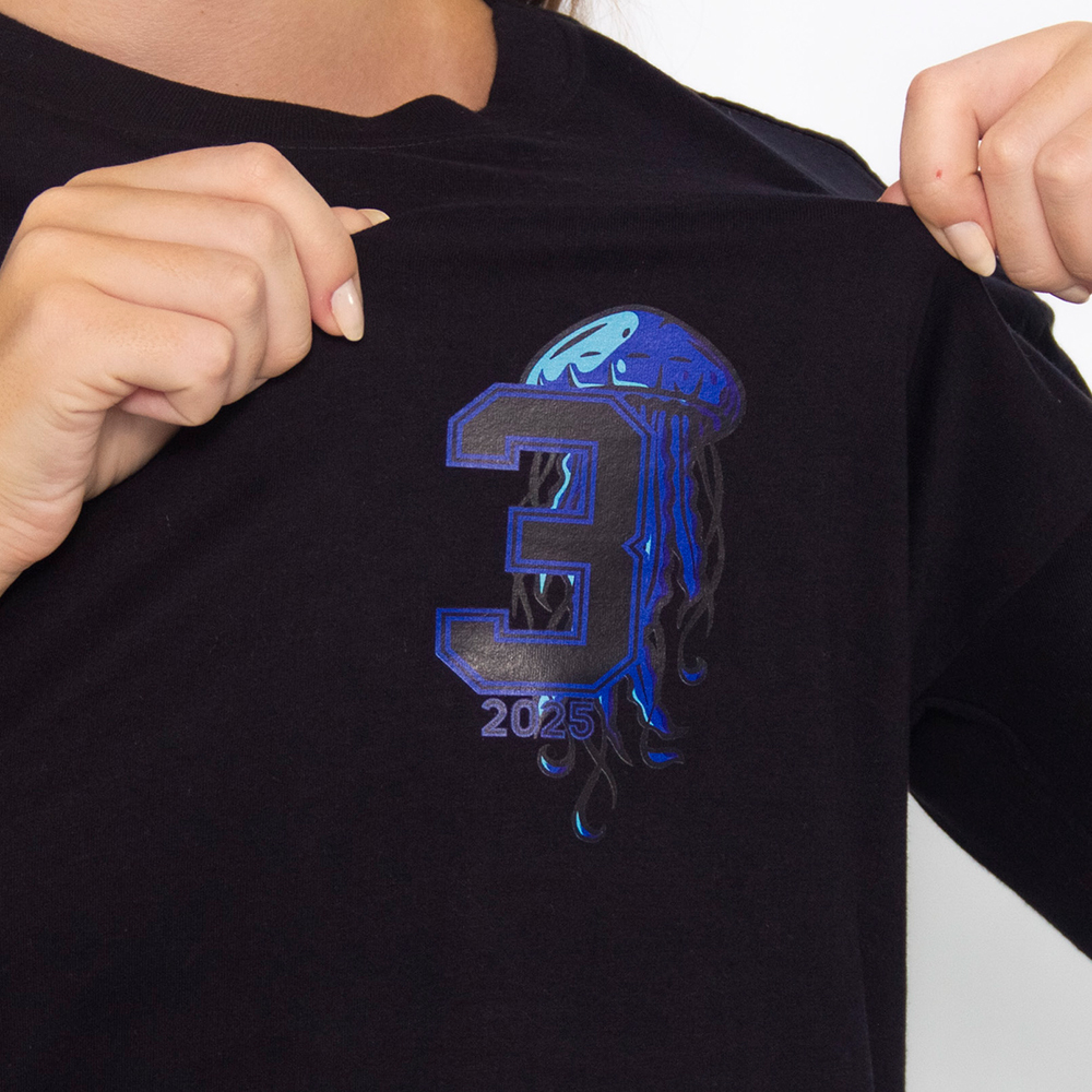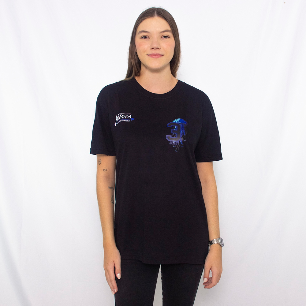 Camiseta para terceirão na cor preta com estampa em silk frente e costas.