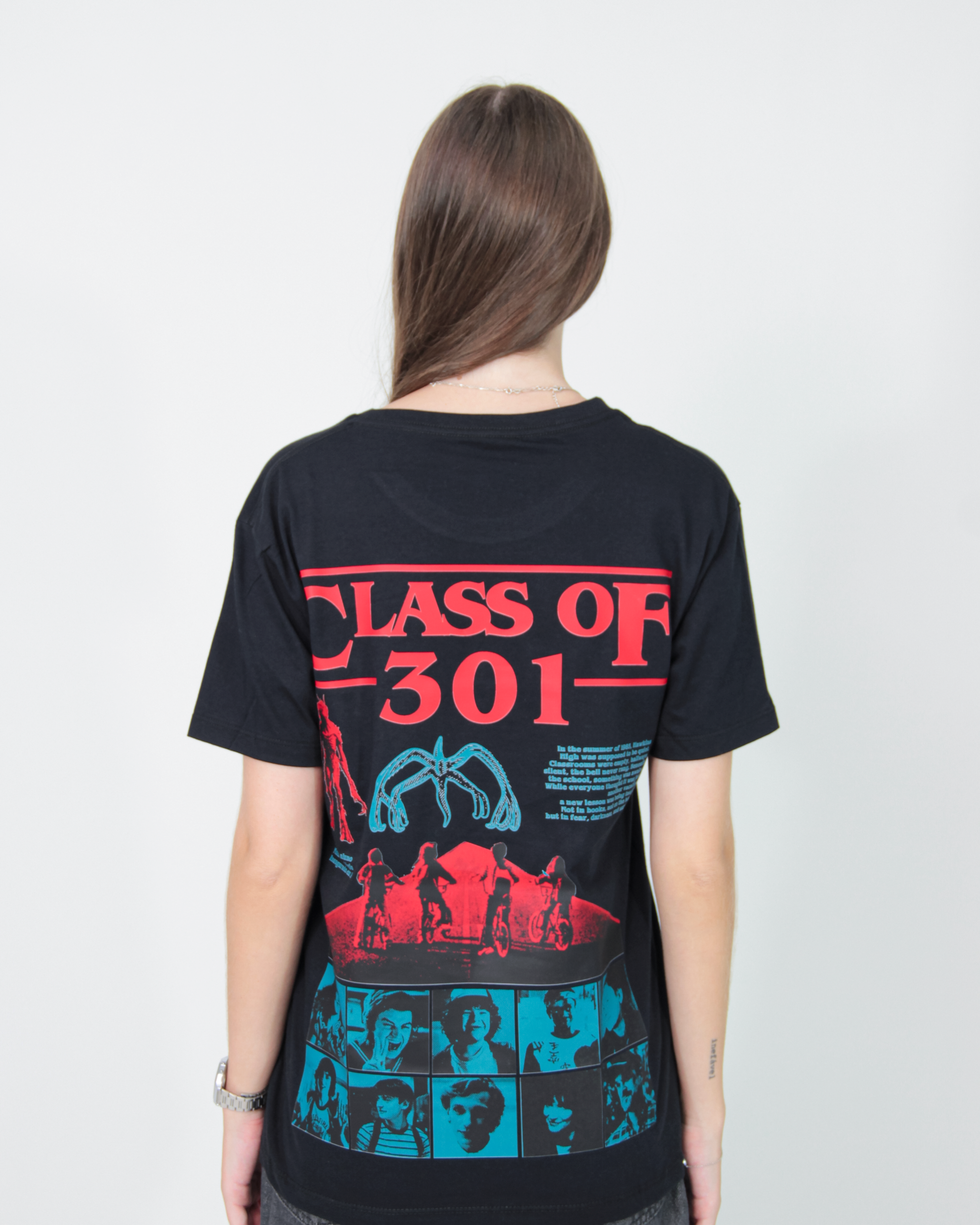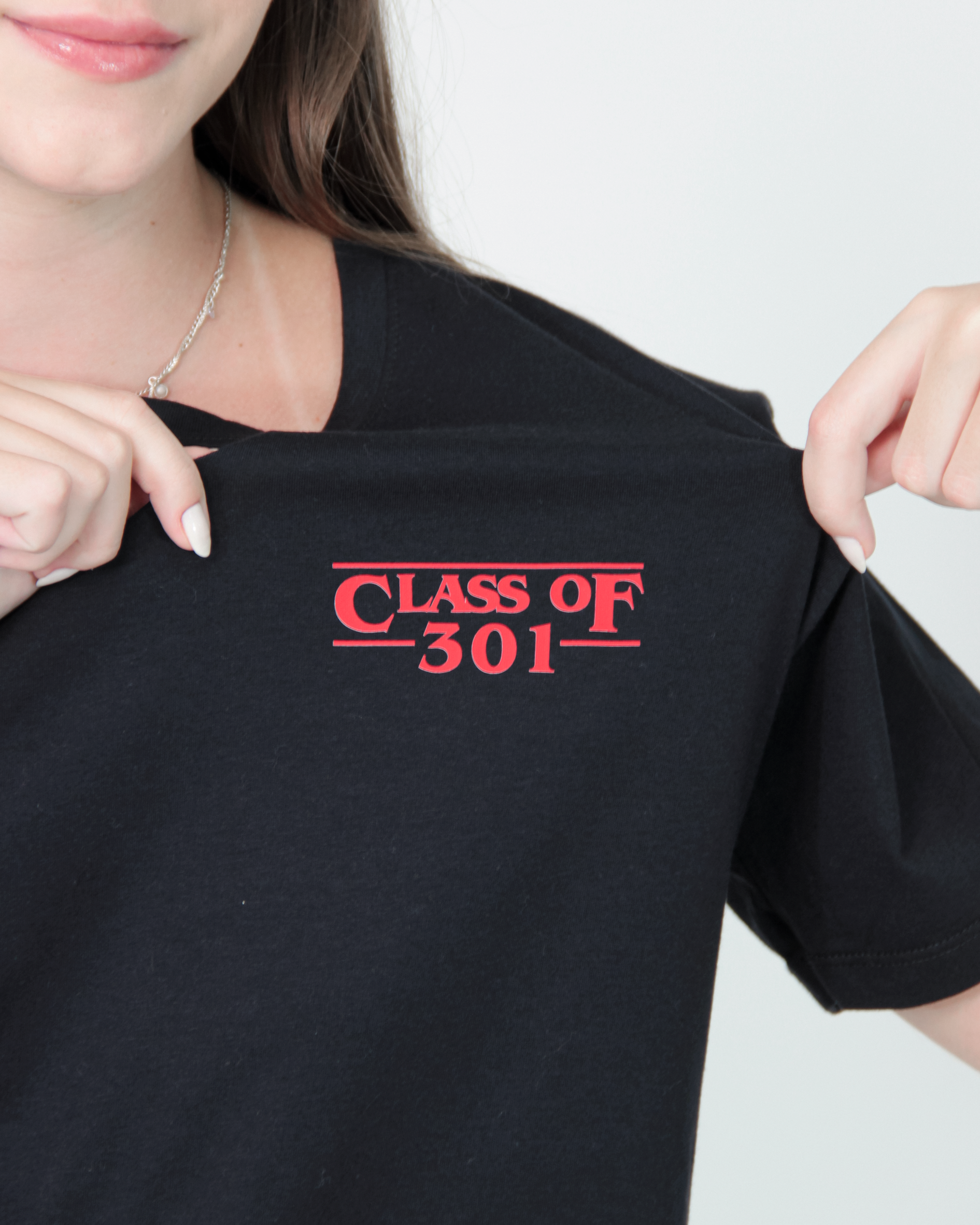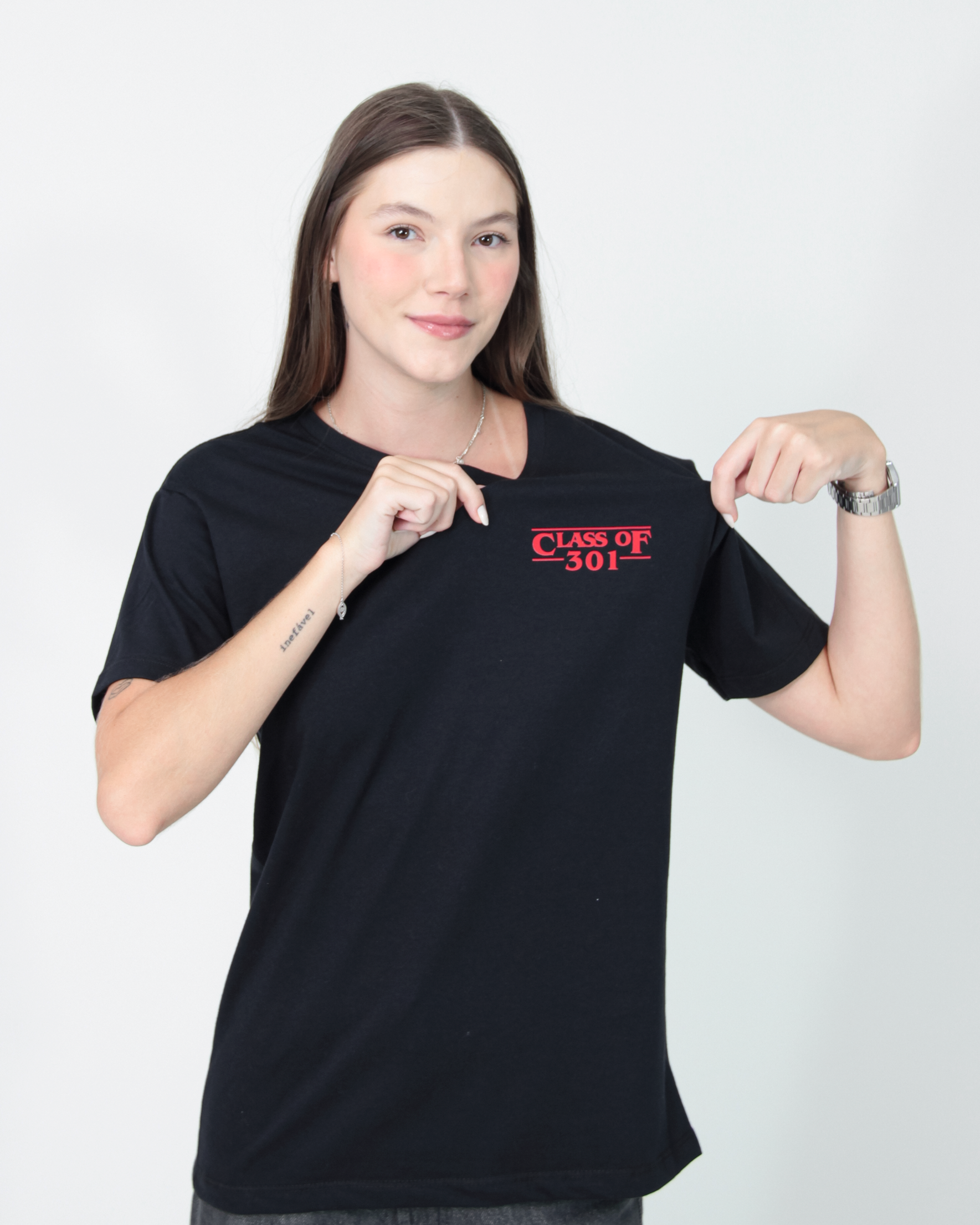 Camiseta para terceirão na cor preta com termocolante frente e costas.