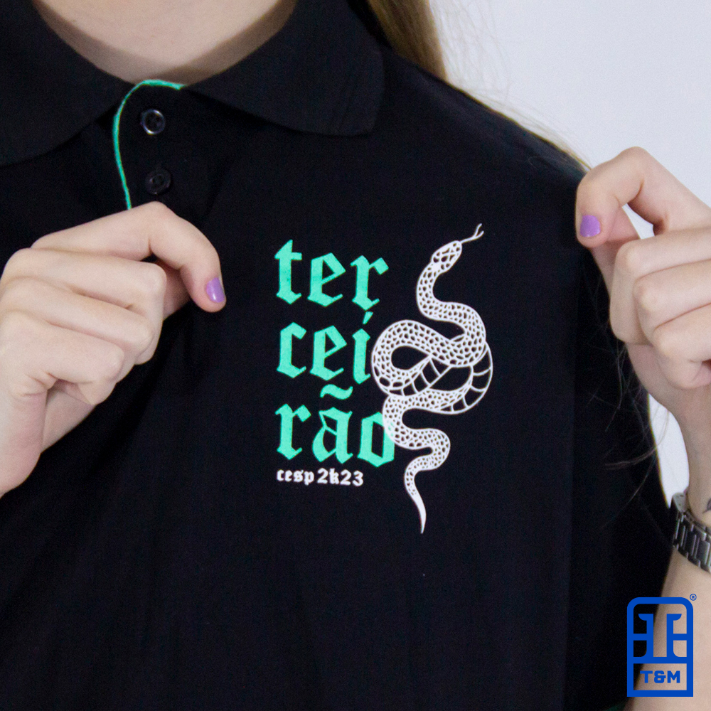 Camisa pólo costuma ser feita em malha piquet 50% algodão 50% poliéster, porém temos a possibilidade de trabalhar também com a malha 100% algodão (mesmo material usado para as camisetas tradicionais).