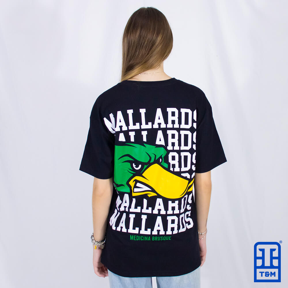 Camiseta preta com estampa em silk frente e costas.