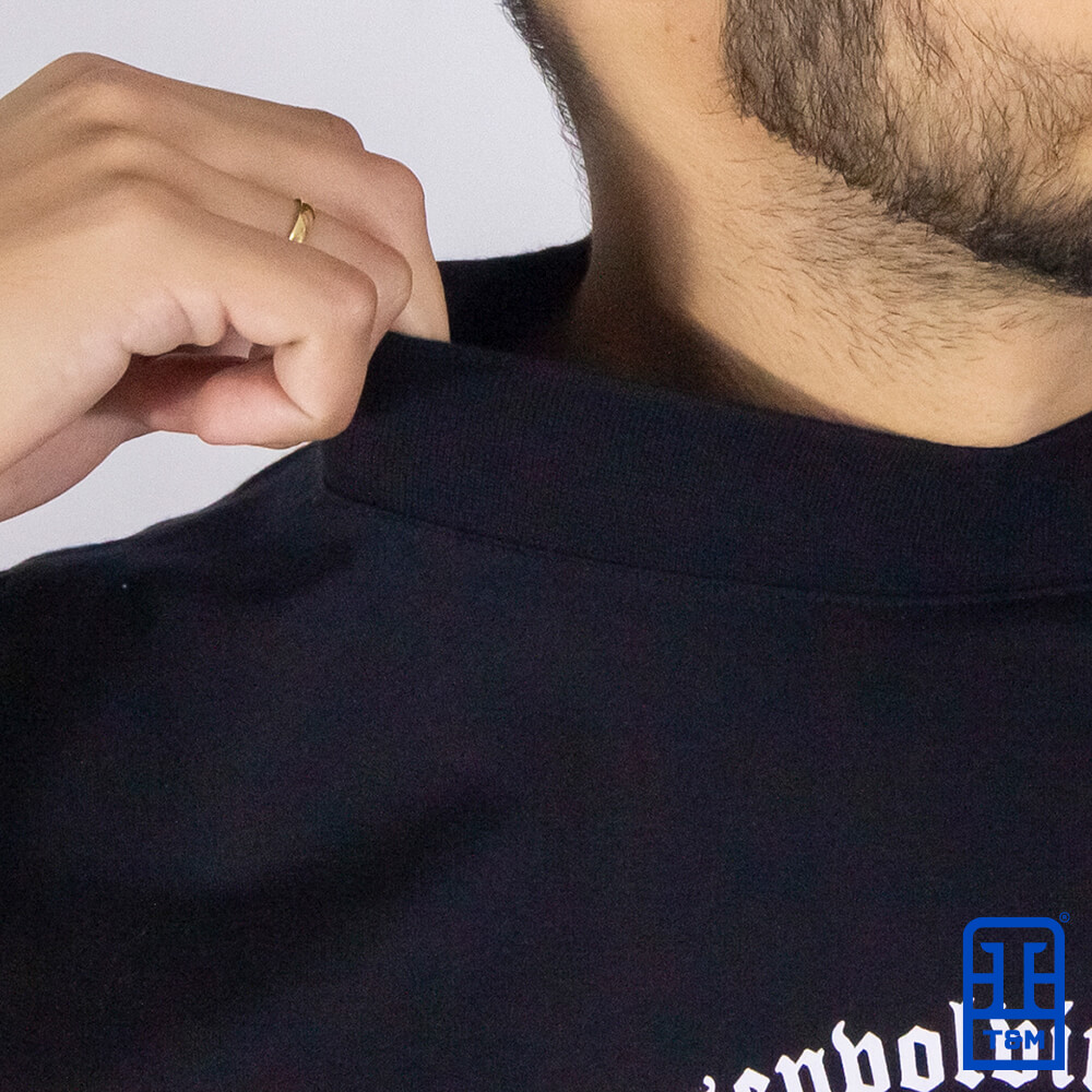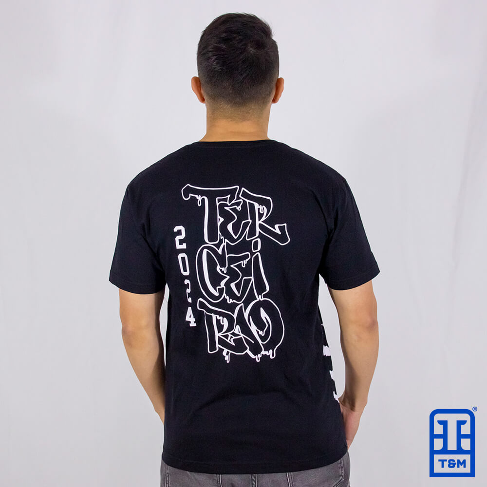 Camiseta oversized preta com estampa em silk frente e costas.
