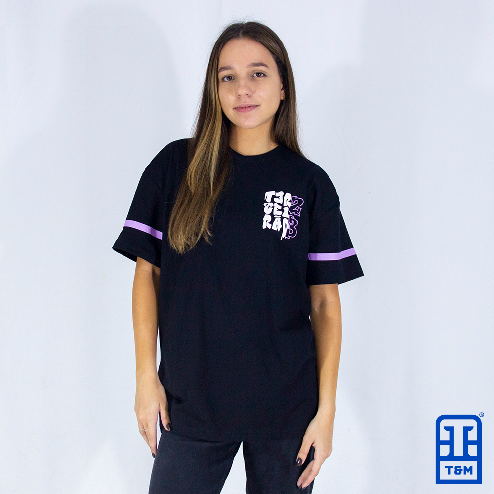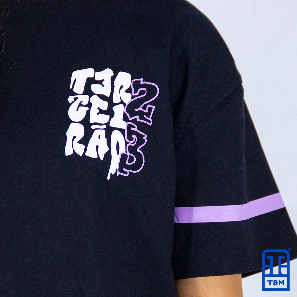 Camiseta preta com estampa em silk frente, costas e mangas.