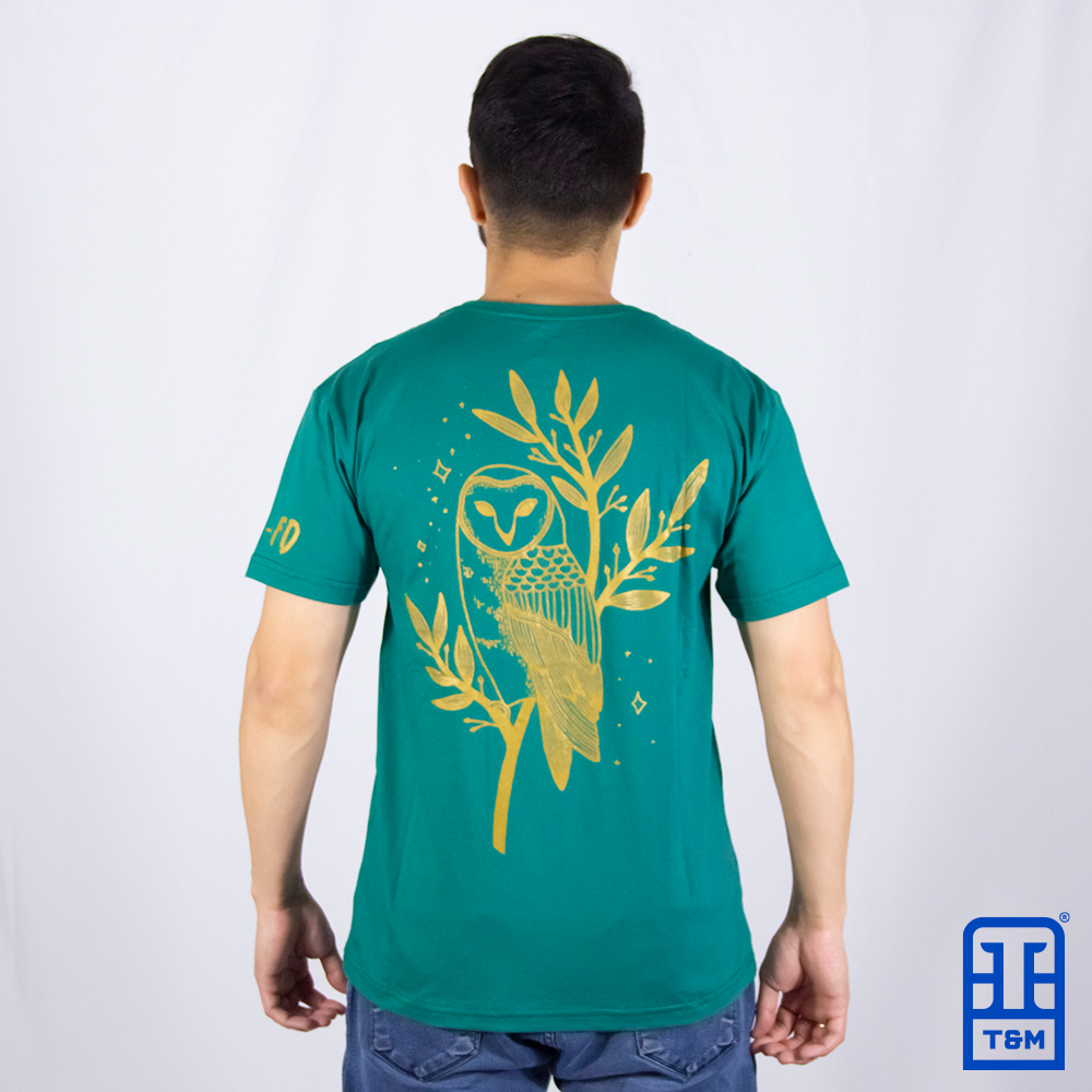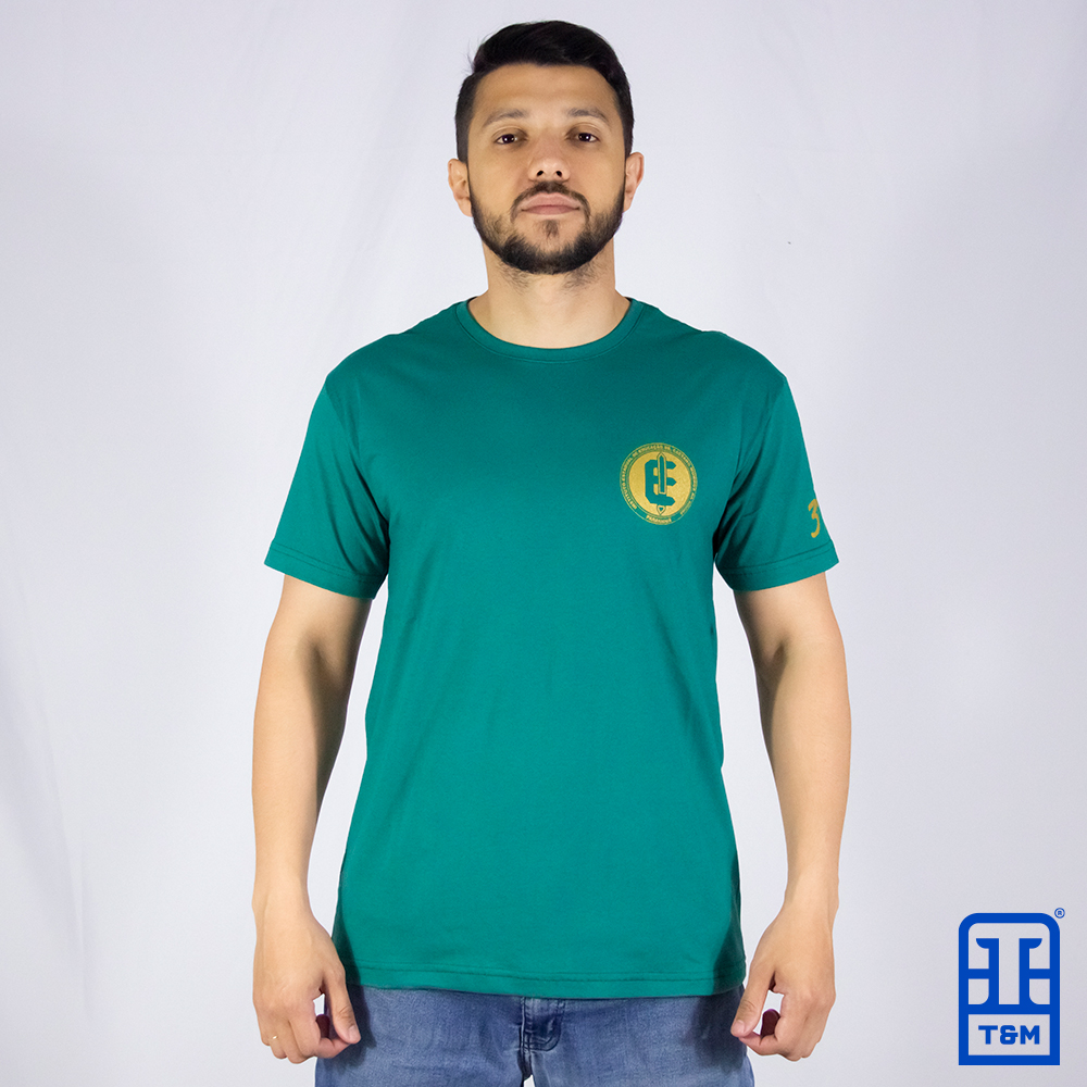 Camiseta verde murano com estampa em silk frente, manga e costas.