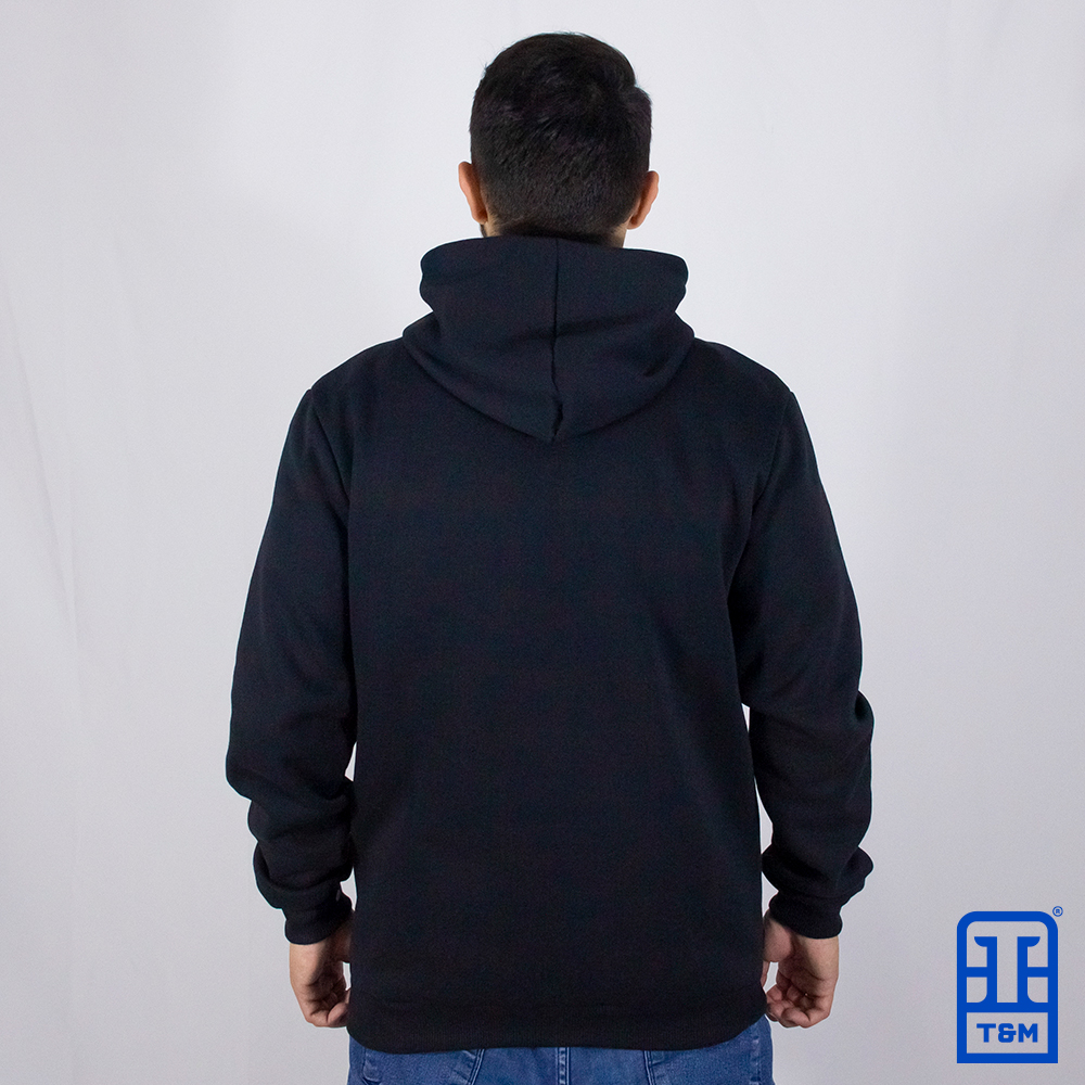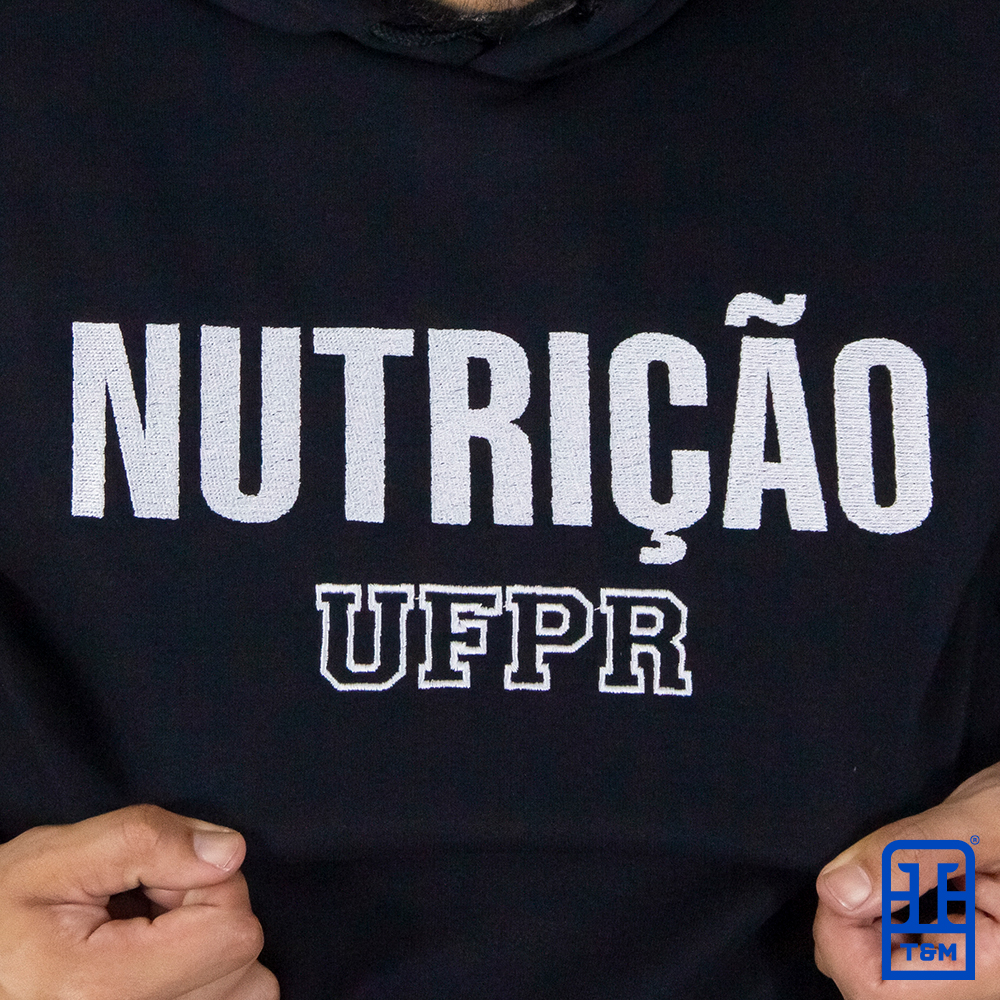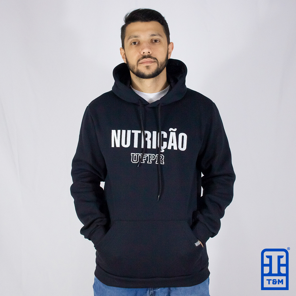Moletom canguru preto com bordado total na frente.