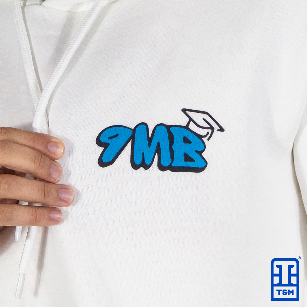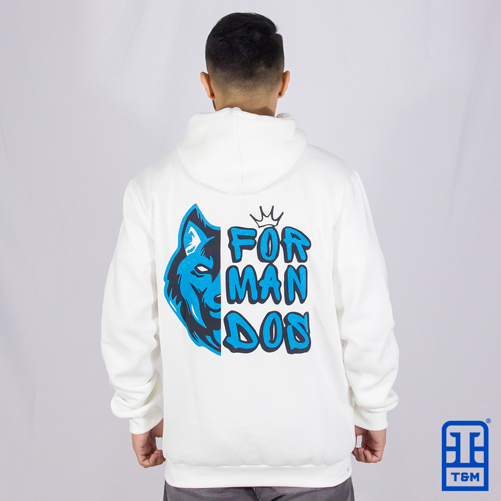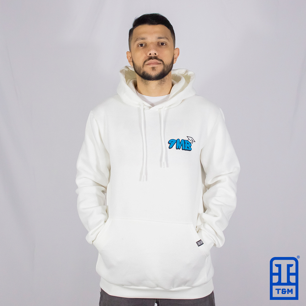 Moletom canguru champagne, frente e costas com estampa em silk.