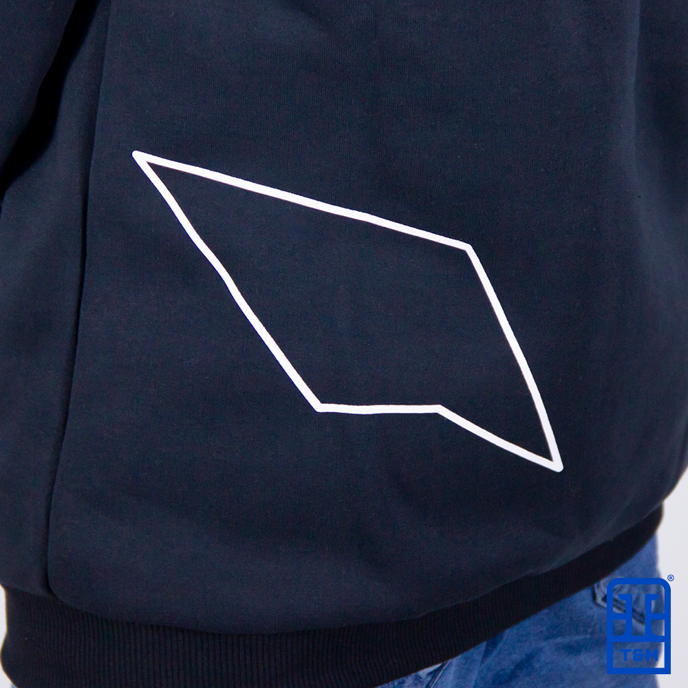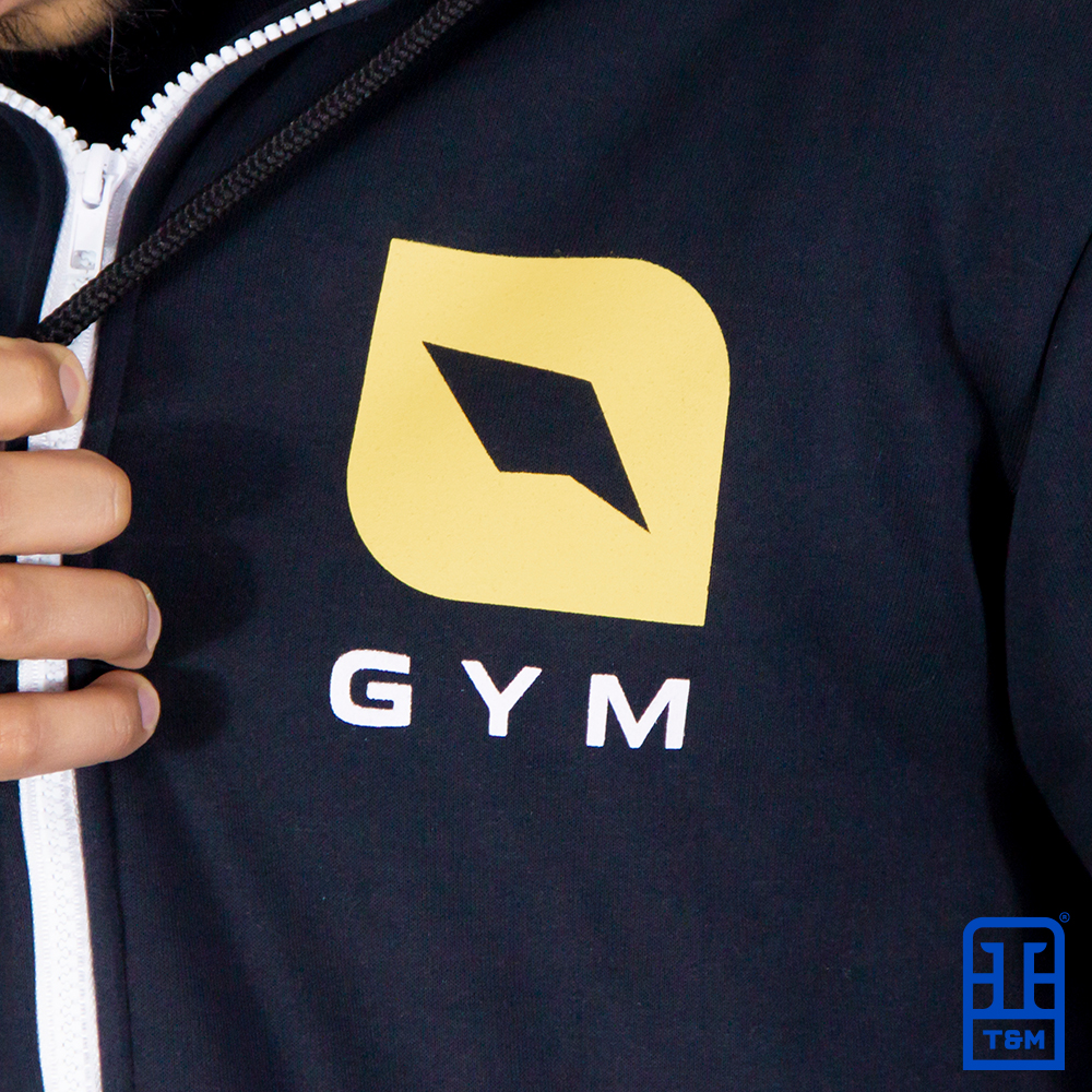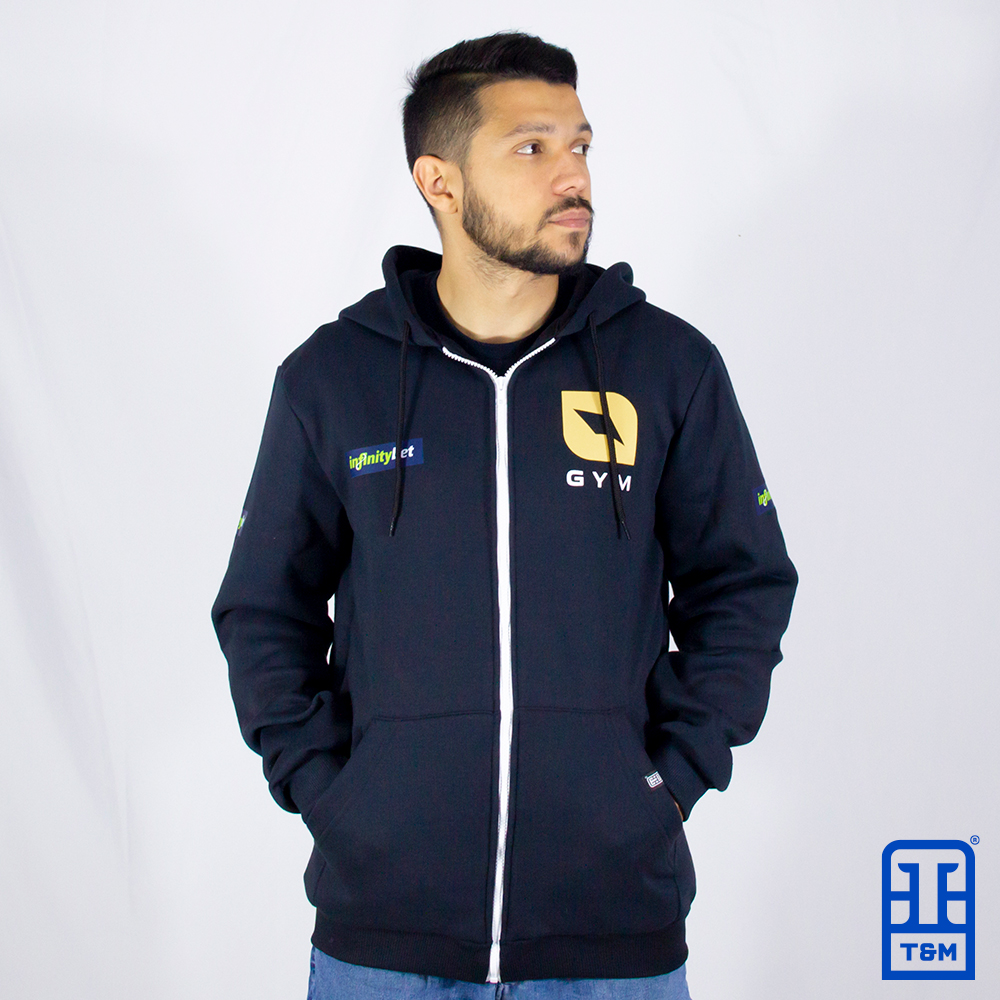 Moletom com zíper, frente com DTFe estampa em silk, manga com DTF e costas com estampa em silk.