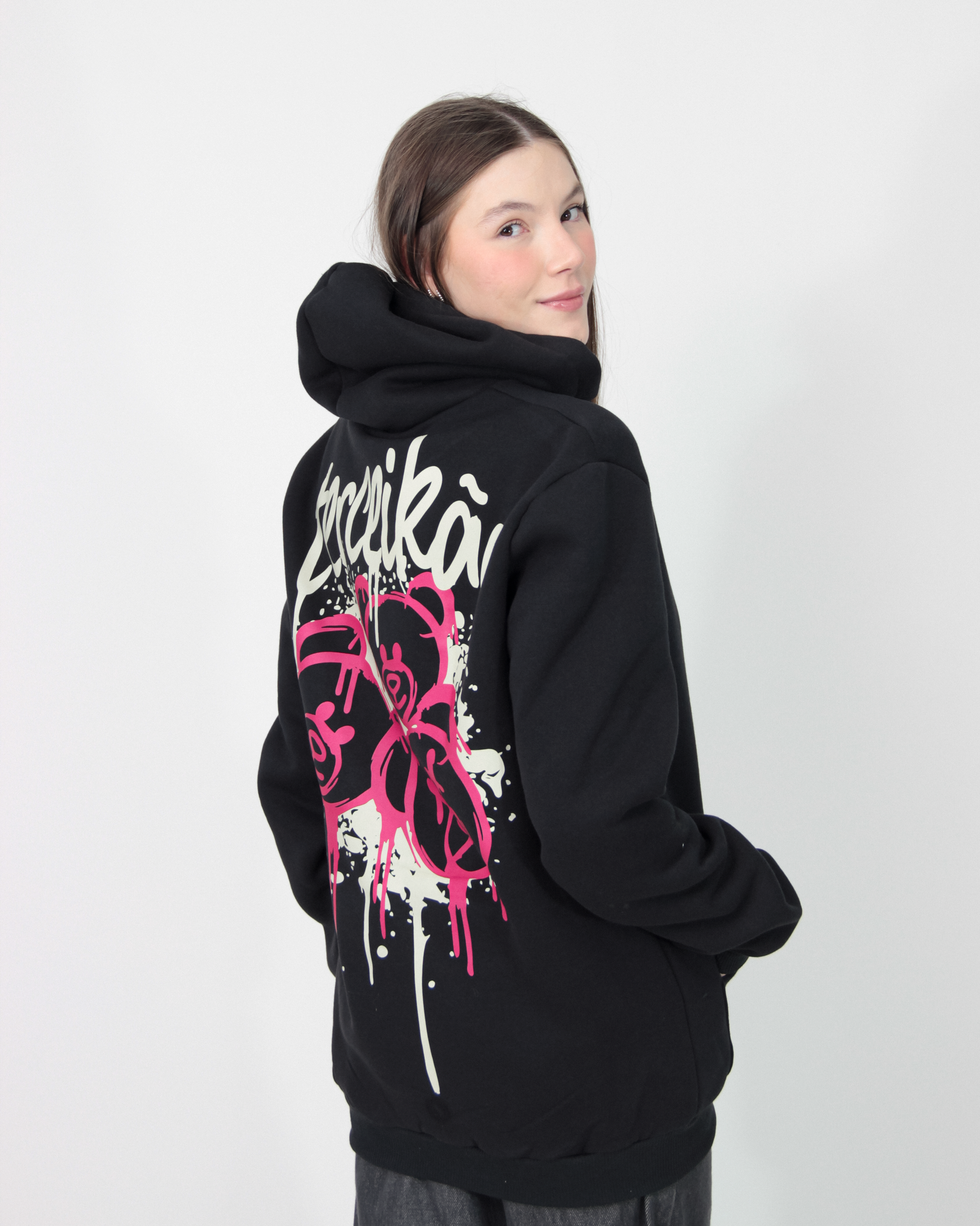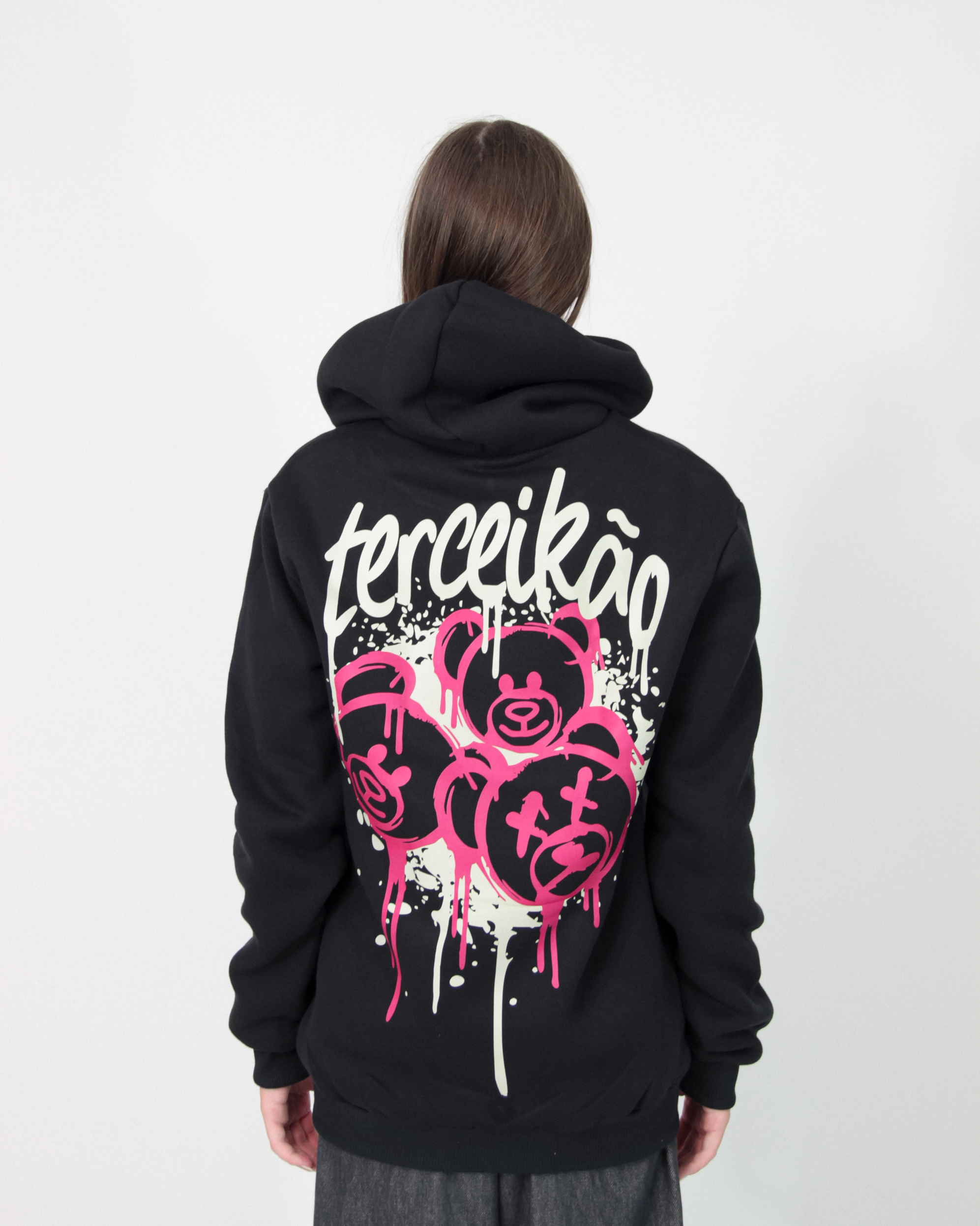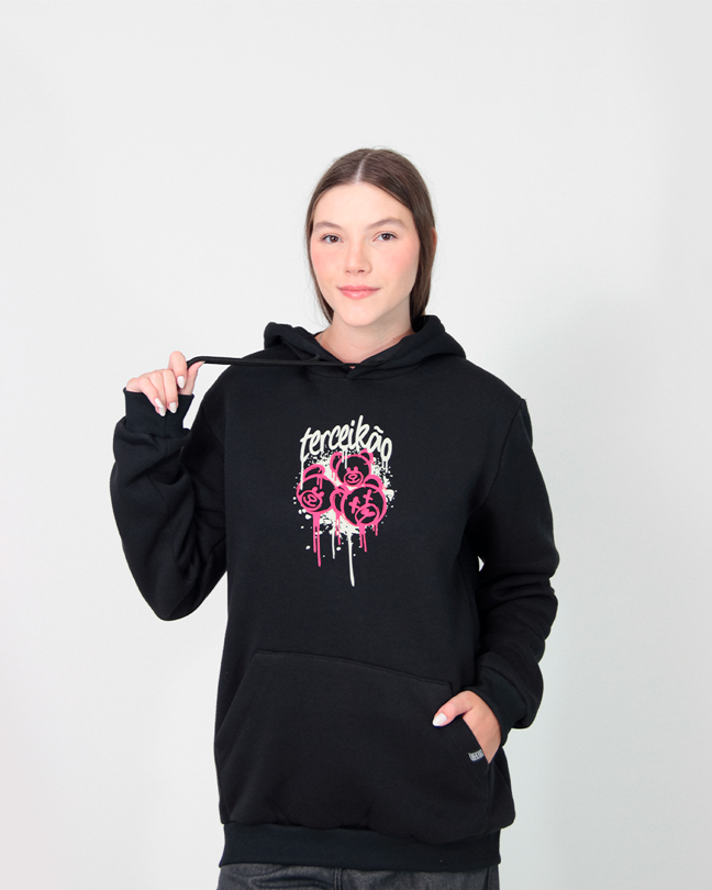 Moletom para terceirão na cor preta. Peça com aplicação de termocolante frente e costas.